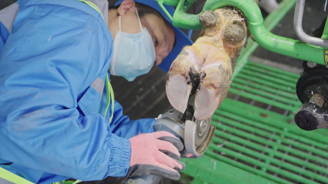 在孕晚期,兽医还会为牛妈们进行肢蹄查看、修蹄,做好产前预备,保证奶牛在临产时可以坚持最佳状况。