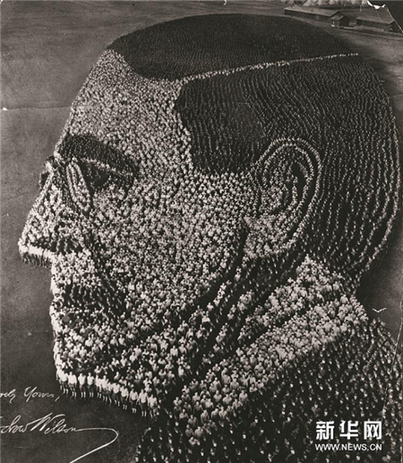 1918年,俄亥俄州,在谢尔曼营,21,000名军官和战士组成了威尔逊总统的头像。