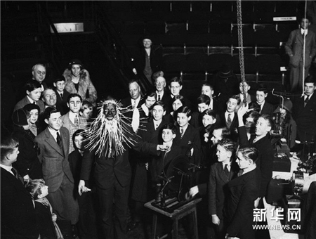 1930年11月。在纽约帝国大厦的工地上,仆人为建筑工人上菜。这类胆大包天行为的相片在其时备受欢迎,可是图中的男人们未必是线月,廷德尔教授演示“毛发通电”。戴着特别面具的教授正在伦敦皇家研讨所为小学生上圣诞节特别课程。