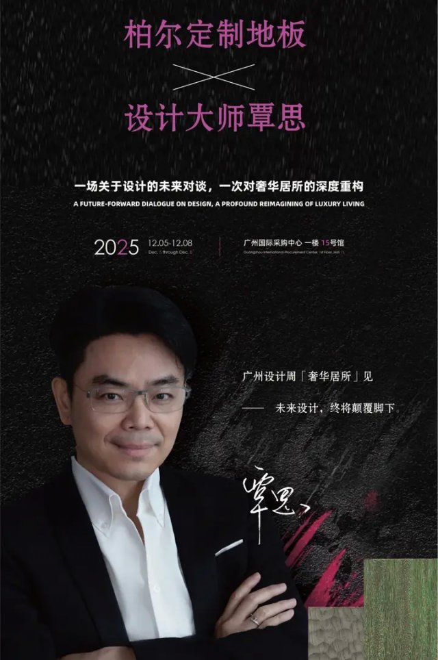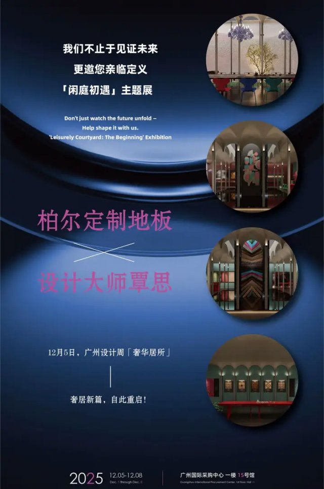 2025年12月5-8日,广州设计周“亲爱”主题盛会启幕之际,这场三方共创的“地面艺术”盛宴也将在“奢华居所”核心展区正式亮相。现场不仅将呈现柏尔技术内核与覃思设计理念融合的重磅作品,更将设置深度对话环节,邀请行业同仁、设计师、高端业主一同探讨“技术与设计如何赋能高端人居”的核心议题。