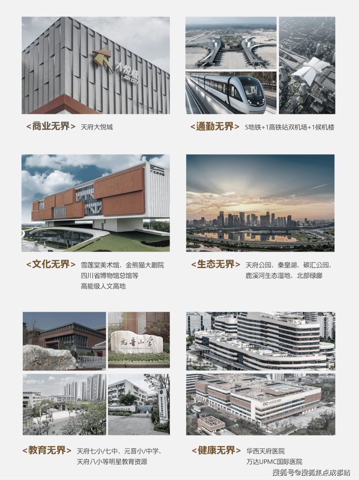项目坐拥三轨交汇地铁网、天府公园生态绿廊、世界会议中心等尖端配套,步行可达超塔地标、商业购物中心及酒店群落,具有举全城之力开展的稀缺地段价值。