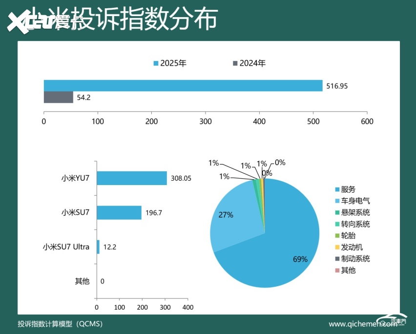 汽车质量投诉点评:去年,小米投诉指数同比涨超8倍,经销商不退订金、车灯开裂、驾驶辅助故障成为上榜理由。多个方面数据显示:有关经销商不退订金的投诉指数占比43%。有车主投诉称,自己向4S店支付5000元订金下订小米SU7,但因担忧车辆质量上的问题且自身资金问题影响,提出退订车辆并要求4S店退还订金的意愿,但遭到销售人员的拒绝。此外,车灯开裂和驾驶辅助故障也遭到车主投诉,但投诉量并不高。