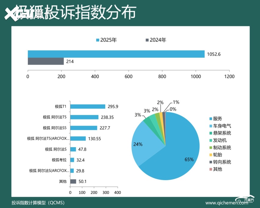 汽车质量投诉点评:过去的一年,极狐投诉指数达到了1052.6,同比上涨了392%,底盘护板减配成为重点投诉问题。据车主反映,2025款极狐T1底盘的高压线束未配备护板,线束直接在外,存在严重安全风险隐患。另有车主表示,目前厂家针对该问题采取区别对待的解决方法,仅为小部分车主免费加装护板。与此同时,新车降价也遭到了部分车主的投诉,涉及2025款极狐阿尔法T5、极狐阿尔法S5等车型。