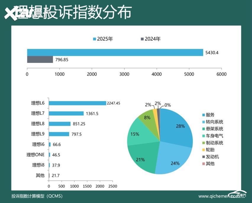 汽车质量投诉点评:去年,理想投诉指数高达5430.4,同比涨超5倍。这背后,下摆臂异响和新车降价遭到了车主们的集中投诉。2025年7月,理想L系列焕新版出现大规模异响问题,多位车主反映提车后不久就会出现左下支臂、右下支臂异响,行驶约2700公里时转向异响明显。面对车主们的投诉,官方解释了异响原因并提供了补偿。此次风波平息后,理想因对理想L系列调整销售政策被老车主认为是变相降价从而遭到投诉。
